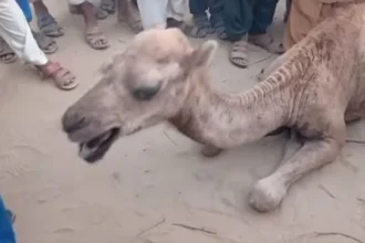 For allegedly trespassing for water, a young camel is tortured and crippled by a Sukkur feudal lord.
