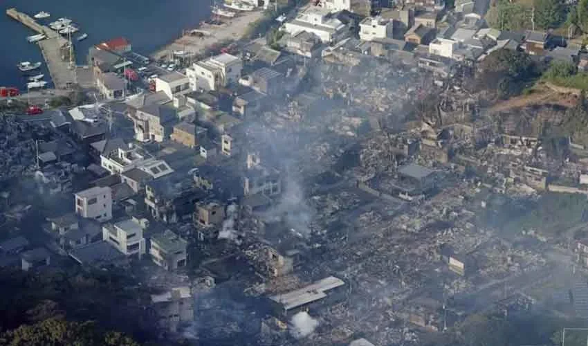 A devastating fire swept through Oita City’s Saganoseki district in southern Japan on Wednesday, destroying over 170 buildings and claiming one life. Emergency services, including military and firefighting helicopters, battled the flames that spread across residential areas, nearby forests, and even an uninhabited island offshore.